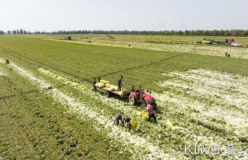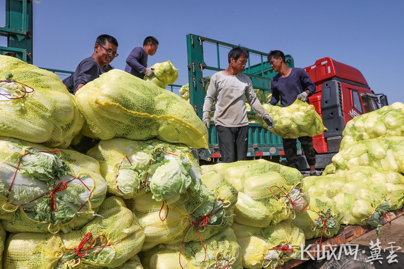 村民正将白菜转车。通讯员 辛海成 武殿森 摄