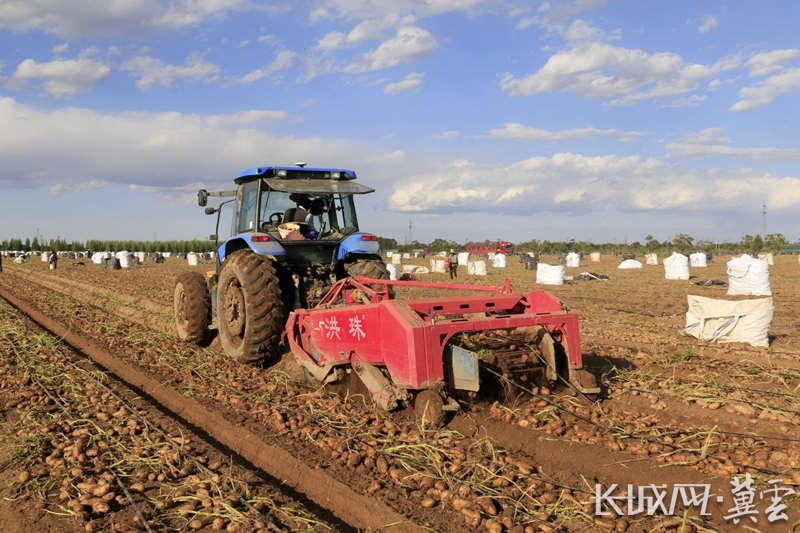 马铃薯收获机作业。通讯员 王媛媛 摄