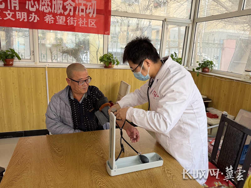 志愿者为老人测量血压。通讯员 周大伟 供图