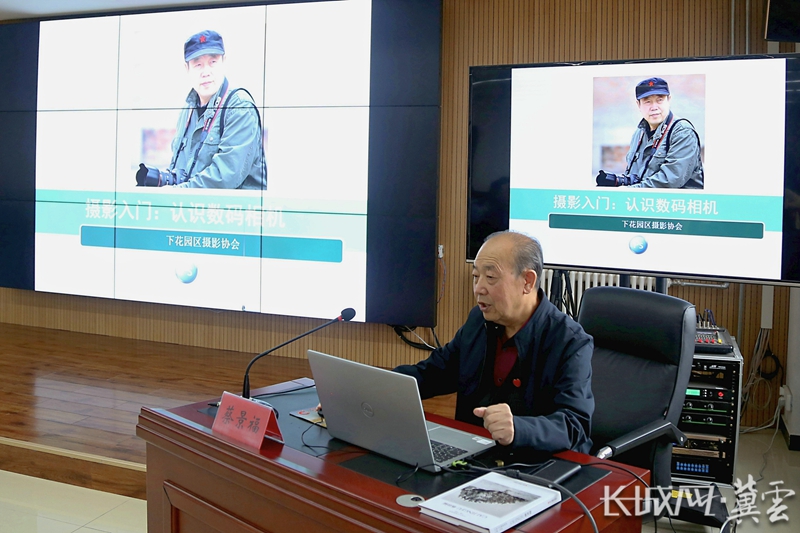 本次培训特邀下花园区摄影协会名誉主席蔡景福授课,作为河北省摄影家协会会员、中国摄影著作权协会会员,蔡景福深耕摄影领域多年,拥有丰富的工作经历和摄影实践经验。培训中,蔡景福以“摄影入门与数码摄影”为核心主题,结合宣传工作实际需求,从摄影基础原理、数码设备操作技巧入手,重点讲解了会议与活动摄影的构图方法、光线运用、画面捕捉等实用内容,通过案例分析与实操指导,帮助学员快速掌握和提高摄影技能水平和宣传工作能力。