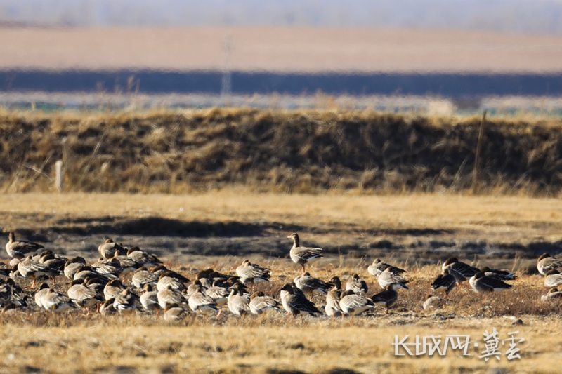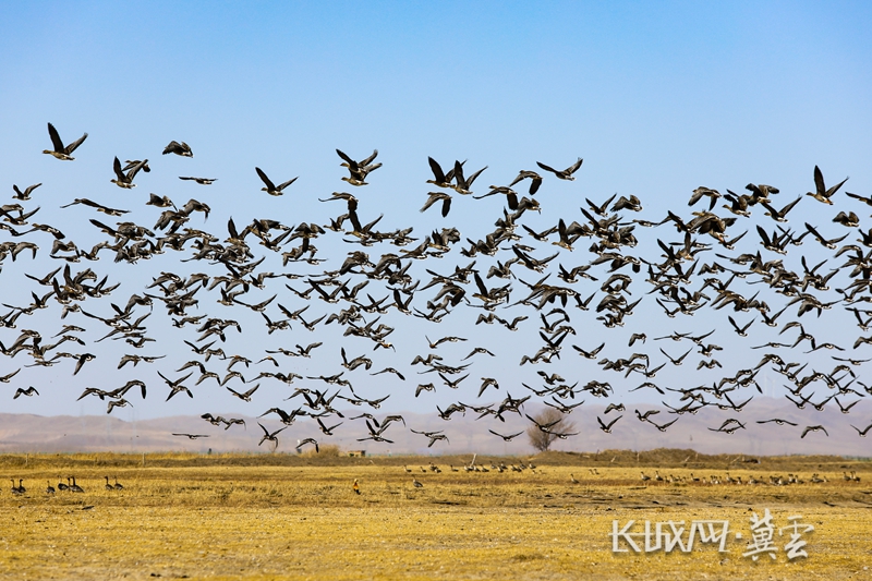 成群的大雁在塞北管理区落脚。通讯员 王会文 摄