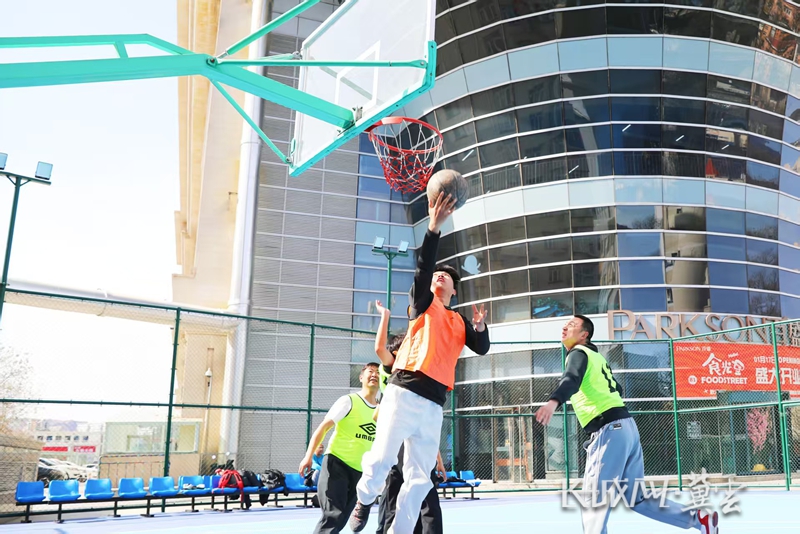 市民在三人制篮球场健身娱乐。通讯员 岑屹 摄