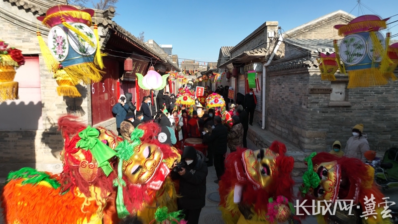 长城网·冀云客户端讯(记者 何丹丹 通讯员 蔺媛媛 邢建荣)年关将至,蔚县暖泉镇西古堡村内处处张灯结彩,浓浓的年味扑面而来,伴随着阵阵锣鼓声,各村的社火队正在排练舞狮子、划旱船、扭秧歌等各种民俗社火节目,当地的百姓和表演者们一起斗舞扮丑,好不热闹,古堡里一片欢乐祥和的景象。