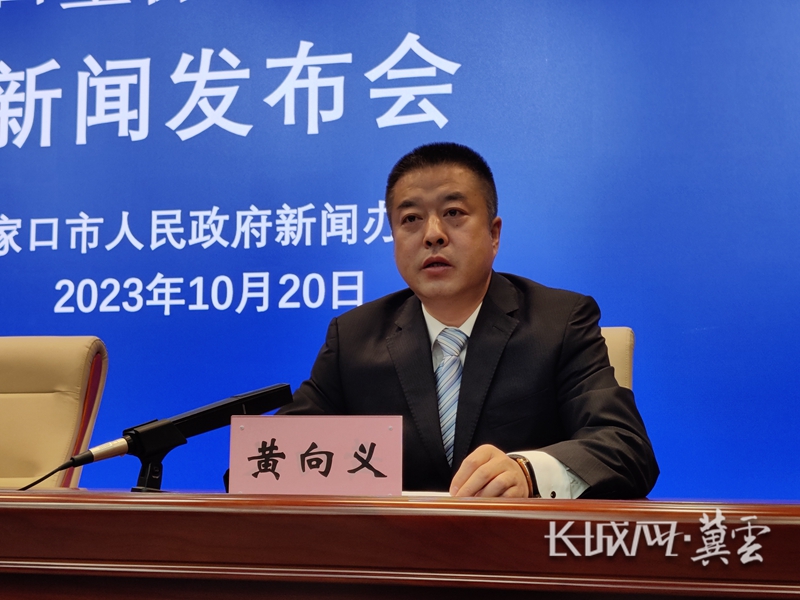 张家口市桥西区人民政府副区长黄向义回答记者提问。长城网·冀云客户端记者 王晶 摄