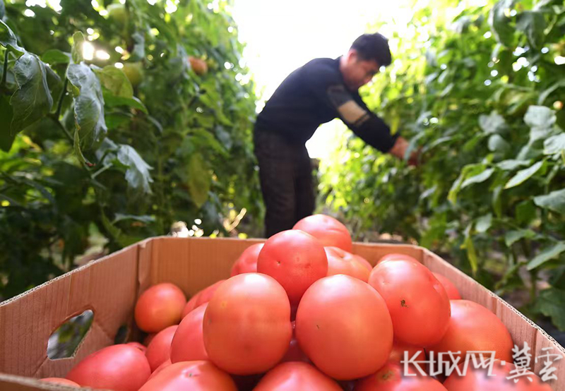 农民在东八里乡下八里村蔬菜大棚里采摘西红柿。通讯员 孙慧军 摄
