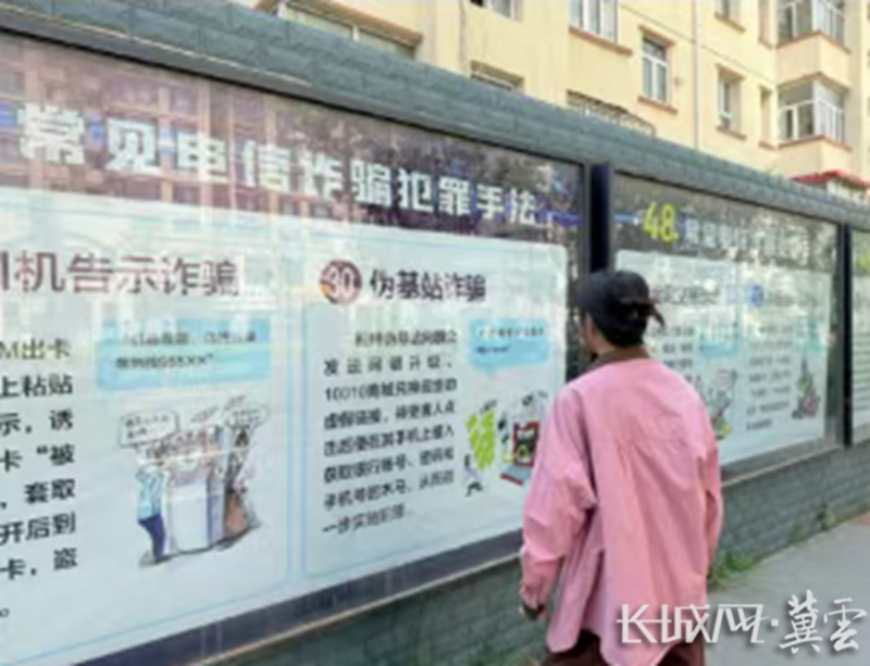居民在宣传墙前浏览反诈知识。张家口市桥东区委宣传部 供图
