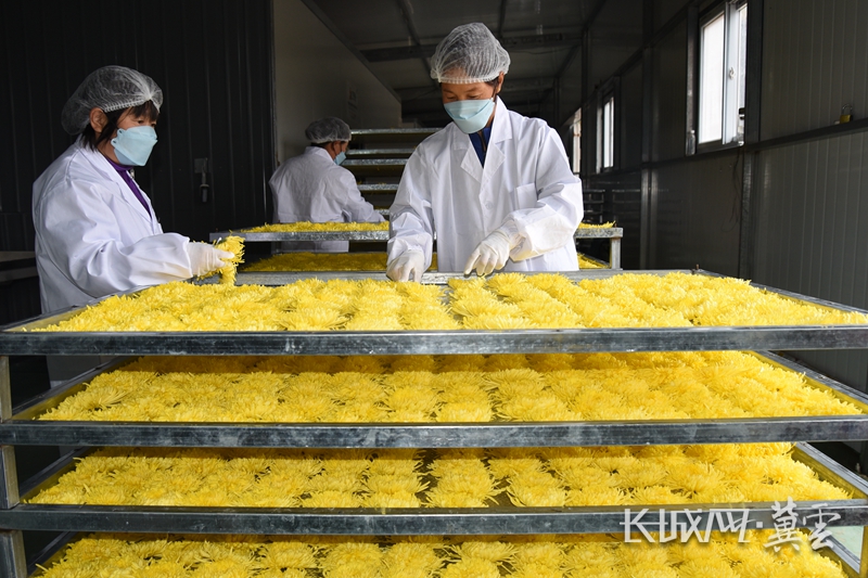 该设施花卉基地占地5500平方米,建成4座日光温室大棚、1000平方米晾晒场地。企业引进先进设备开展菊花深加工,构建起“种植—加工—销售”全产业链条,今年还新增樱桃、中药材等特色种植,实现企业、集体与农户共赢,带动周边30余人稳定就业。