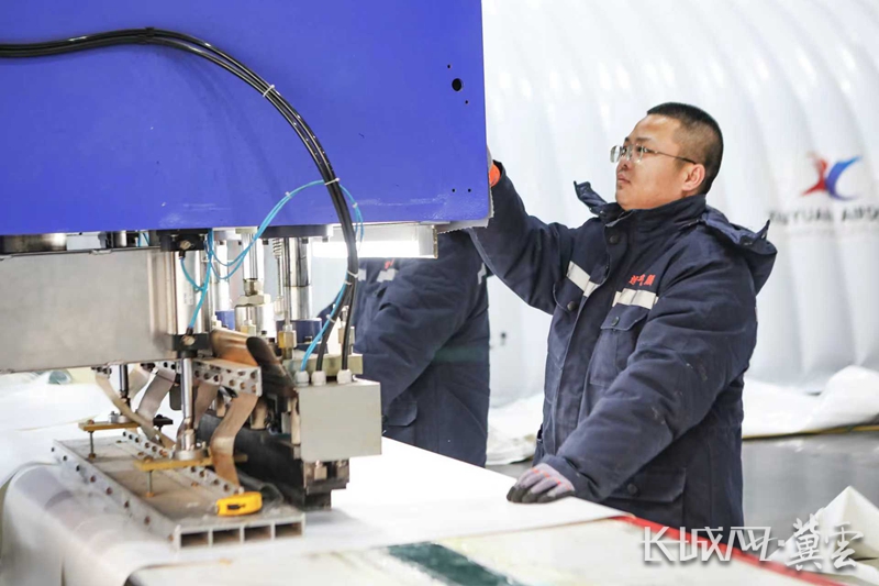 长城网·冀云客户端讯(通讯员 邢鹏飞 罗纳)日前,在张家口市万全区的冰雪产业园重装备区的一座现代化厂房中,生产线高速运转。这里是河北米锐特气膜制造有限公司的生产基地,也是国内气膜制造行业的重要力量。