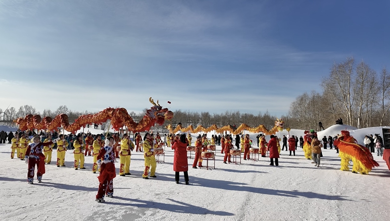 塞纳都滑雪场精彩的舞龙表演。张北县融媒体中心 供图