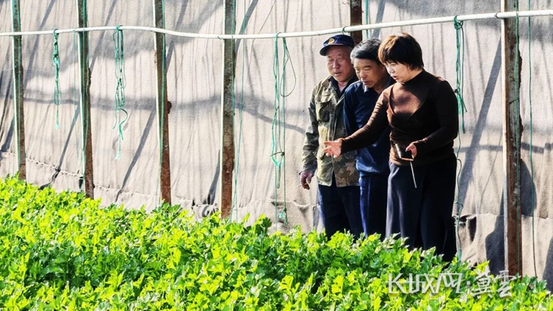 管理人员细致查看西芹长势。通讯员 艾洋 摄