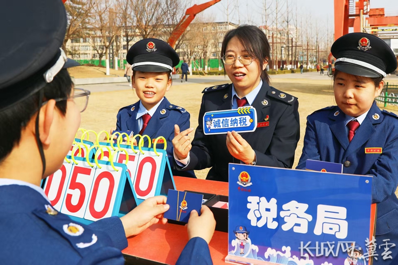 长城网·冀云客户端讯(通讯员 岑屹 韩文俊)近日,国家税务总局张家口市桥东区税务局联合张家口市桥东区卫华小学举行第35个全国税收宣传月启动仪式。税务工作者和学生一起进行税收普法挑战赛,在游戏中学习税收知识。